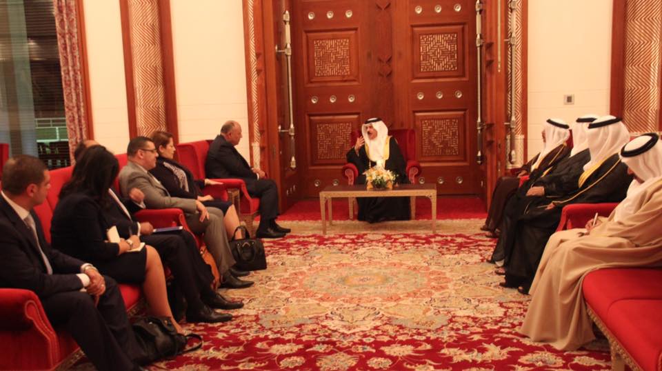 التقى وزير الخارجية سامح شكري، مساء الأحد 12 الجاري، بالعاهل البحريني الملك حمد بن عيسى بن سلمان آل خليفة في ثاني محطات جولته العربية بعد الأردن، والتي تشمل بجانب الأردن والبحرين كلاً من الكويت والإمارات وسلطنة عُمان والسعودية. كما أجرى سامح شكري جلسة محادثات موسعة مع نظيره البحريني سمو الشيخ خالد بن أحمد آل خليفة.