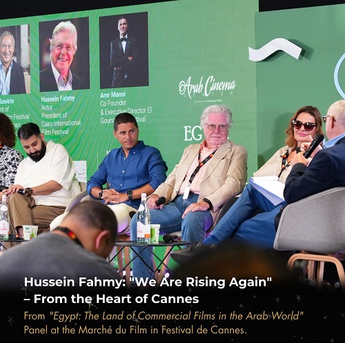 ضمن المشاركة الاستثنائية لمهرجان القاهرة السينمائي الدولي في فعاليات الدورة الـ78 لمهرجان كان السينمائي الدولي، شارك الفنان الكبير حسين فهمي، رئيس مهرجان القاهرة، اليوم في جلسة نقاشية بارزة بعنوان “مصر: دولة الأفلام الجماهيرية في العالم العربي”، والتي أقيمت على المسرح الرئيسي بقصر المهرجانات.