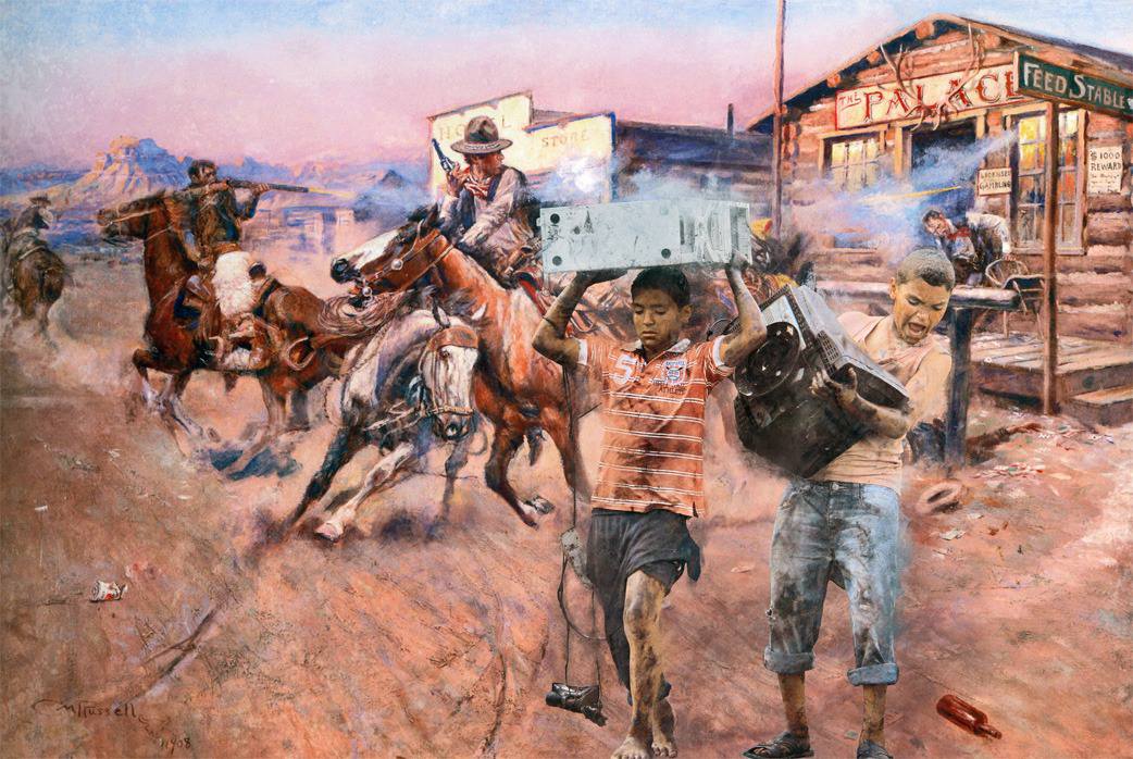 وأضافت ” وتيكو ليست مجرد أسطورة ولكنها عدسة تشخيصية لفهم أنماط التدمير الذاتي للبشرية، إنه يزدهر في الإغتراب لإقناع الأفراد والمجتمعات بأن الهيمنة أمر طبيعي والإستهلاك تقدم، بعد تجربتي في القاهرة، بدأتُ أرى أوجه تشابه بين الصور الأسطورية للفنانين المراسلين في الغرب الأمريكي المتوحش (مثل فريدريك ريمينغتون وتشارلز ماريون راسل) وتأثير المجتمع الدولي في العالم العربي. في كلتا الحالتين، استُخدمت الصور شديدة التأثير على نطاق واسع لتبرير العدوان. وبالاستناد إلى هذه التشابهات، أردتُ ابتكار عمل فني يعكس ملاحظاتي ويتحدى مفاهيمنا المسبقة. يلعب الفن دورًا مهمًا في تقديرنا لتفاصيل الثقافة والمعتقدات. كما يُمكن للفن أن يُوصل طرقًا لتفكيك هذه التفاصيل. ومثال واضح على ذلك الدعاية الإخبارية، إذا غيّرنا عنصرًا واحدًا في صورة ما، فقد يؤثر ذلك على قراءتنا الكاملة للمشهد. وبالمثل، إذا استبدلنا عنصرًا بآخر، يُمكن إعادة سرد قصة”.