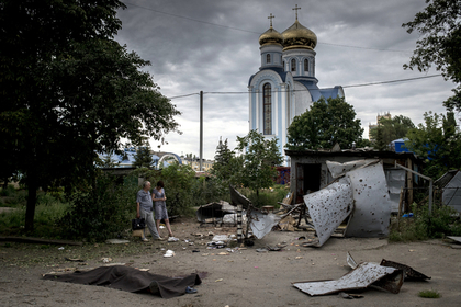 سكان لوغانسك بعد القصف المدفعي على المدينة. 18 يوليو 2014