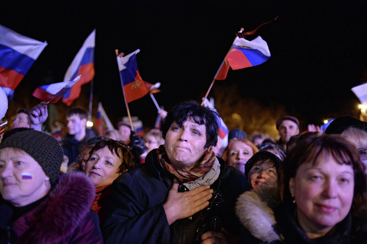 سكان سيفاستوبول في عرض احتفالي أقيم بعد الاستفتاء على وضع شبه جزيرة القرم. 17.03.2014
