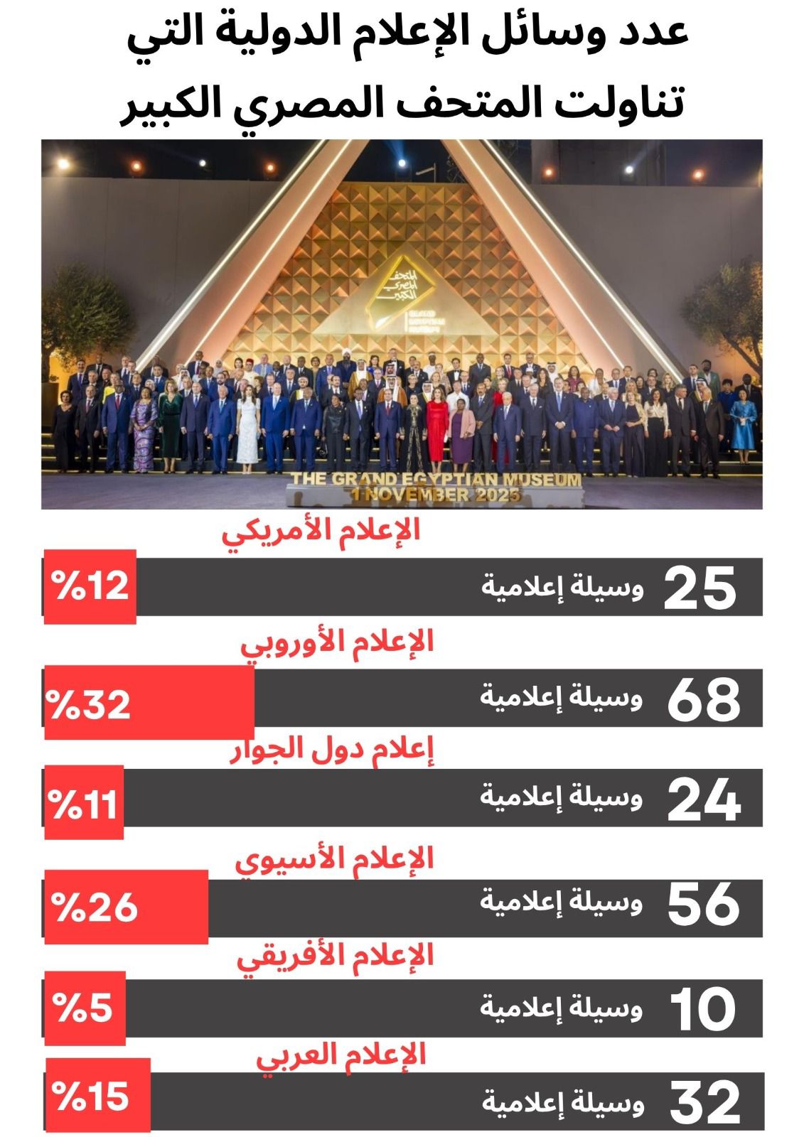 هذه الحقائق أكدها الرصد الإعلامي الذي قامت به قطاعات الهيئة العامة للاستعلامات على مدى اليومين الماضيين، حيث صرح الكاتب الصحفي ضياء رشوان رئيس الهيئة أن متابعة ورصد القنوات التليفزيونية وتطبيقات البث الرقمي على وسائل التواصل، التي قامت بها الهيئة على مدار الساعة طوال اليومين الماضيين قد كشفت أن الأغلبية العظمى من قنوات التليفزيون ووسائل البث الرقمي بالصوت والصورة قد بثت فترات طويلة من حفل افتتاح المتحف المصري الكبير بما في ذلك القنوات الإخبارية والسياسية الرئيسية في العالم، فضلاً عن عشرات من وكالات الأنباء المصورة بكافة اللغات.