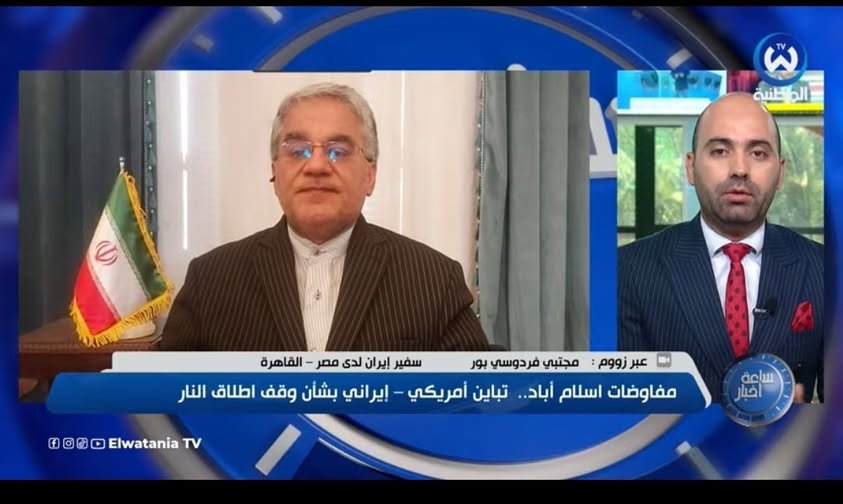 أوضح مجتبى فردوسي بور، رئيس مكتب رعاية مصالح الجمهورية الإسلامية الإيرانية في القاهرة، في مقابلة مع التلفزيون الوطني الجزائري، المواقف المبدئية لإيران إزاء التطورات الإقليمية، والمفاوضات مع الولايات المتحدة، وقضية الحصار البحري، والعلاقات مع دول مجلس التعاون.