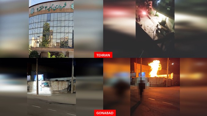 كما تم إضرام النار في رموز وصور علي خامنئي ومجتبى خامنئي وقاسم سليماني في مدن جابهار وأصفهان وسنقر ومشهد وغوناباد وتالش وإيلام وبندر أنزلي. وخلال هذه العمليات، تم رفع رسائل وترديد شعارات دعما لـ (الحكومة المؤقتة)، و(خطة النقاط العشر للسيدة رجوي)، و(جيش التحرير الوطني الإيراني).